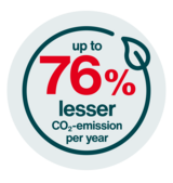 The higher energy efficiency and lower energy consumption reduce CO₂ emissions by up to 76 % per year and therefore enable sustainable, environmentally friendly operation.