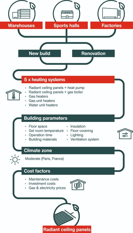 There are many heating solutions for large spaces on the market, but which is the best option? A recent study by Tribu Energie shows that considerable energy and cost savings can be achieved by choosing the right heat emitter, even when the heat generator remains unchanged. For example, switching from water unit heaters to radiant ceiling panels can reduce energy consumption by up to 30%, while still using the same gas boiler. When combined with heat pumps, savings of up to 70% are possible.